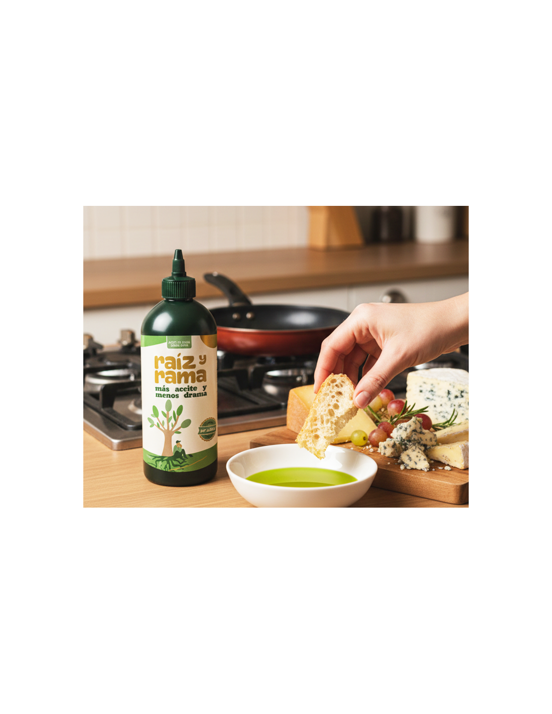 El AOVE pa'aliñar raíz y rama realza el sabor natural de tus platos sin enmascararlos. Su aroma fresco y perfil afrutado lo convierten en el complemento ideal para: